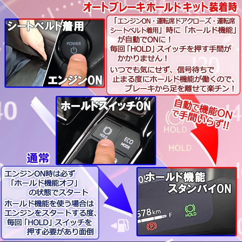 - Automatic Functionality: Once installed, the brake hold function activates automatically every time you start the engine, eliminating the hassle of pressing the HOLD button repeatedly.