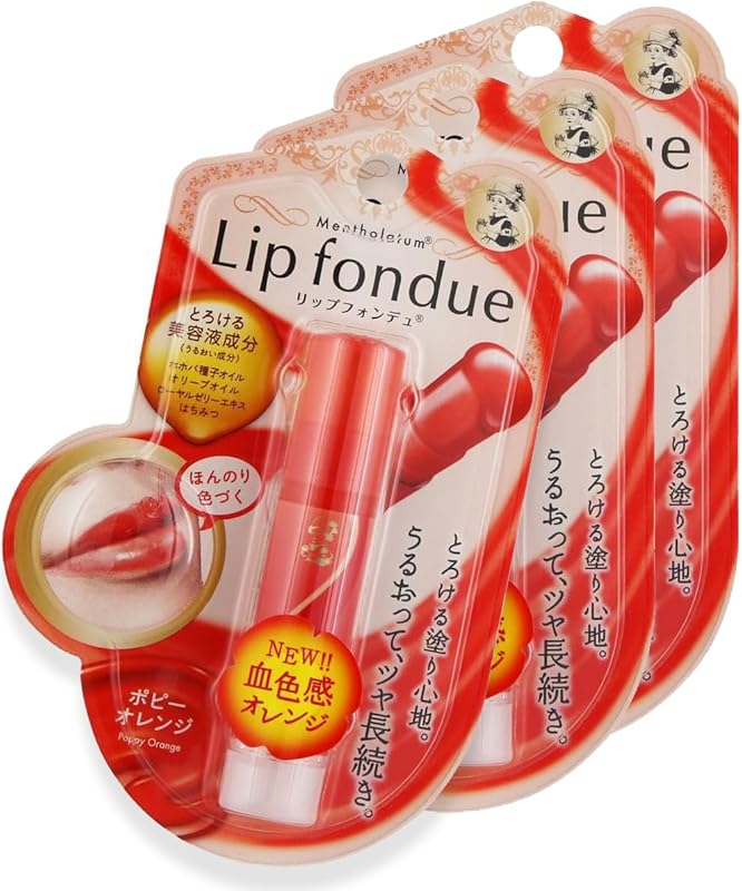 Discover the ultimate lip care experience with the Melty Lip Fondue in Poppy Orange by Mentholatum. This exquisite lip gloss stick unites the nourishing benefits of a lip balm with the vibrant color of lipstick, offering a perfect balance for your daily lip care routine. Each package includes three sticks, each weighing 4.2g, ensuring you have an ample supply of this essential beauty product.
