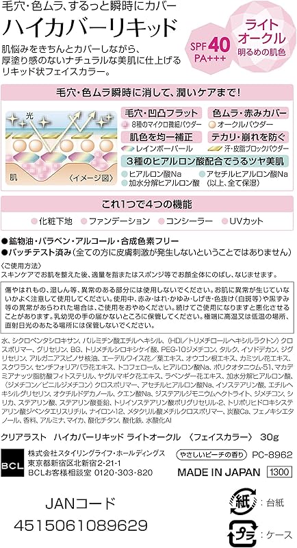 Discover the Clearlast High Cover Liquid Concealer in Light Ocher, your secret weapon for achieving flawless, natural-looking skin. This lightweight, multi-functional concealer offers full coverage while feeling effortlessly breathable—perfect for everyday use. Enhanced with SPF 35-49 for UV protection, it seamlessly conceals imperfections with a unique blend of micro-fine powders and rainbow pearls, ensuring a radiant complexion. Enjoy free worldwide shipping directly from Japan, along with a 1-month warranty for peace of mind. Elevate your makeup routine with this must-have concealer that caters to all skin types and keeps you looking stunning all day long!