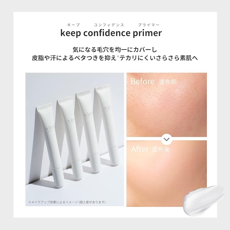 Elevate your makeup routine with the Confidence Skin Primer from vim BEAUTY, a pore-minimizing and long-lasting base cream suitable for all skin types. This lightweight formula not only blurs imperfections but also controls oil and enhances your skin’s natural glow, ensuring a smooth, flawless finish. Shipped directly from Japan, this product comes with free worldwide shipping and a 1-month warranty, making it a reliable addition to your beauty arsenal. Experience the difference of Japanese skincare innovation and enjoy a radiant complexion that lasts all day, whether you're at work or enjoying a special occasion.