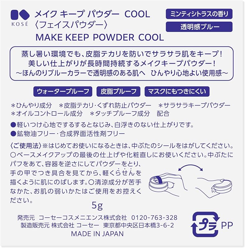 When comparing the Make Keep Powder COOL to other similar products, its unique formulation stands out for its effective oil control and refreshing feel. Many face powders can leave a heavy or powdery finish; however, KOSÉ Cosmeport's blend ensures that your skin feels light and breathable. For those seeking a dependable solution for hot weather or active days, this powder is an exceptional choice that combines practicality with luxury.