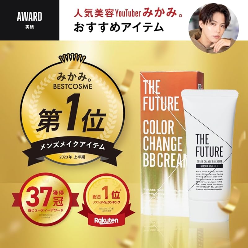 With an impressive total of 37 prestigious men's beauty awards and over 300,000 units sold as of September 2023, THE FUTURE Color Change BB Cream has been featured in numerous men's beauty and fashion publications. Endorsed by popular beauty YouTuber Mikami, this revolutionary product is a must-have for Generation Z seeking to elevate their grooming and beauty routine.