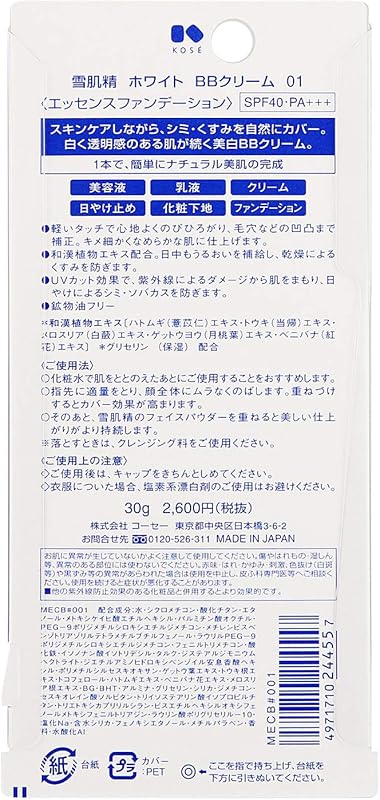 Unlock your beauty routine with SEKKISEI's Radiant Skin BB Cream with SPF Protection, your go-to solution for a flawless complexion. This innovative cream combines full coverage with a natural finish, enriched with Japanese herbal extracts to brighten and even your skin tone. With SPF 40, it protects against harmful UV rays, making it essential for daily wear. Enjoy free worldwide shipping directly from Japan, and shop with confidence knowing you have a one-month warranty. Experience the beauty secrets of Japan and achieve radiant skin effortlessly!