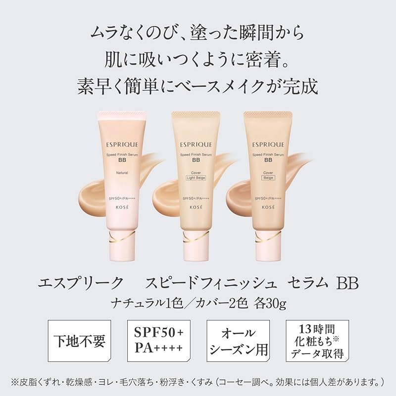 Discover the transformative power of the ESPRIQUE Speed Finish Serum BB Cream, your go-to solution for flawless skin with multi-functional coverage and SPF protection. This lightweight, breathable formula offers medium coverage while hydrating your skin with ingredients like hydrolyzed collagen and hyaluronic acid. Enjoy free worldwide shipping directly from Japan, and shop with confidence knowing this product comes with a 1-month warranty. Perfect for makeup lovers seeking a radiant, dewy finish, the ESPRIQUE BB Cream blends seamlessly, ensuring you stay protected from harmful UV rays all day long. Elevate your beauty routine today!