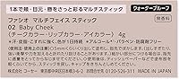Introducing the FASIO Multi Face Stick 02 Baby Cheek, a versatile makeup essential that effortlessly enhances your natural beauty. This innovative multi-use stick is designed to add a delicate flush of soft, milky pink color to your cheeks, eyelids, and lips. Weighing just 4 grams, it is compact and ideal for on-the-go touch-ups, making it a must-have addition to your makeup bag.