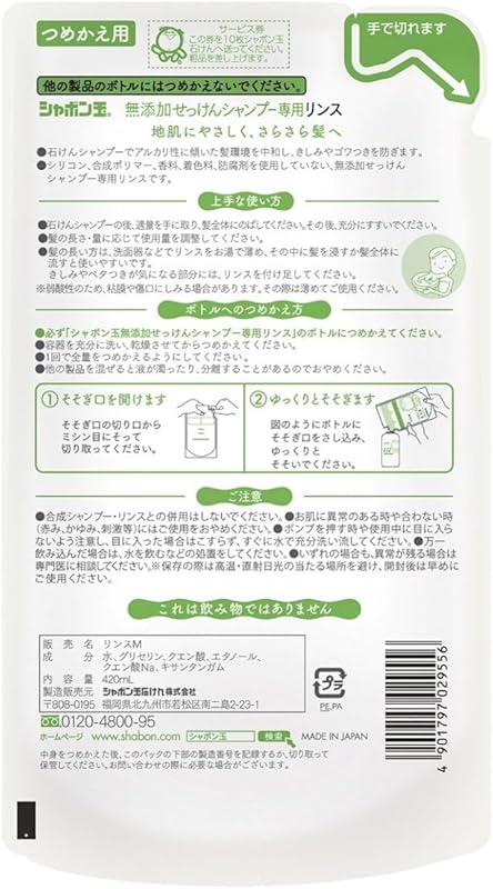 Shabondama Natural Additive-Free Shampoo Rinse Refill 420mL