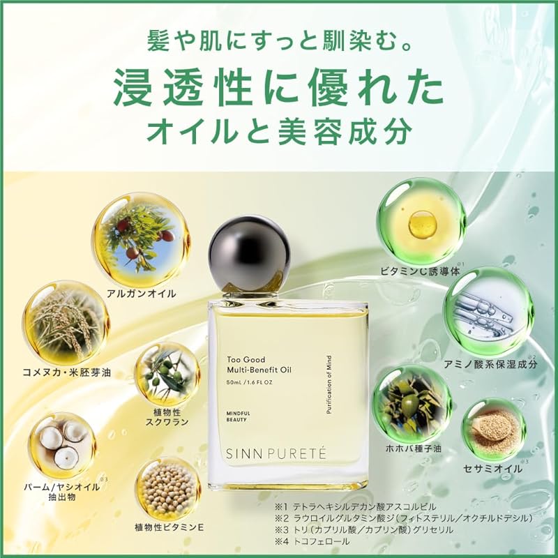 Discover the transformative power of the SINN PURETÉ Toogood Multi-Benefit Hair Oil, a luxurious blend crafted to elevate your hair and skincare routine. This versatile 50ml oil, enriched with rice bran and argan oils, offers conditioning, styling, and hydration all in one. Enjoy free worldwide shipping directly from Japan, along with a 1-month warranty for your peace of mind. Perfect for achieving that coveted wet look with lightweight shine, this award-winning oil also features a calming aroma that promotes serenity and focus. Elevate your self-care rituals today with this must-have beauty essential!