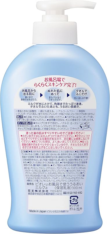 The Biore U Bath Moisturizing Milk is crafted with a blend of rich, hydrating ingredients designed to provide optimal moisture for your skin. Here are its standout features: