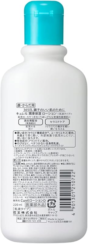 Manufactured in Japan, Curél Moisture Lotion adheres to stringent quality standards, ensuring that each bottle is crafted with care and precision. With a steadfast commitment to skin health and safety, Curél provides reliable and gentle care that you can trust.