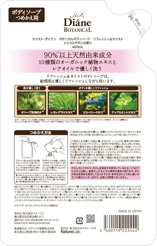Discover the refreshing and moisturizing benefits of Diane Botanicals’ Gentle Botanical Body Wash, specially formulated for sensitive skin. This 400ml body soap, enriched with over 90% natural ingredients like olive oil and shea butter, offers a gentle cleanse without harsh chemicals. Its invigorating citrus scent transforms your shower into a revitalizing spa experience. Plus, enjoy free worldwide shipping and a 1-month warranty, with every product shipped directly from Japan. Perfect for all ages, this eco-friendly body wash is your go-to solution for a nourishing daily skincare routine. Treat your skin with the care it deserves!