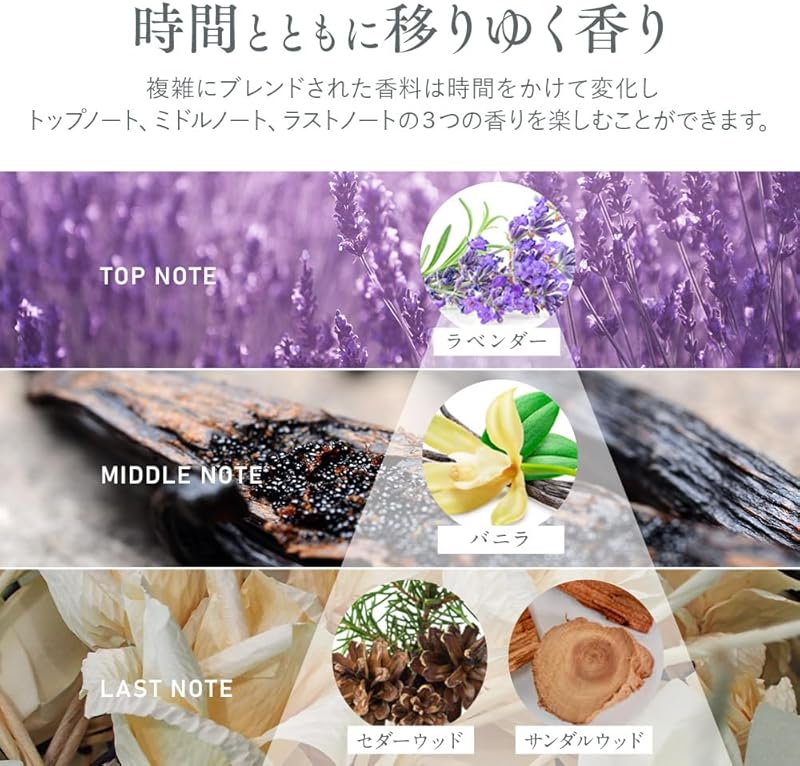 - Fragrance: Lavender, Vanilla, Woody Notes