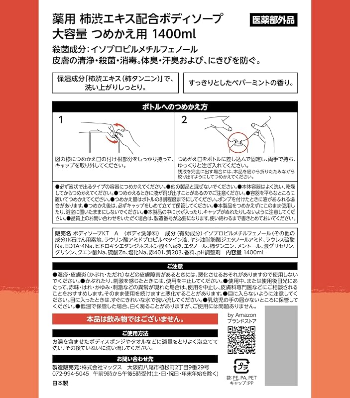 Revitalize your bathing experience with our Refreshing Herbal Body Soap with Peppermint, available in a generous 1400ml refill. Perfect for both men and women, this herbal soap is designed to combat body odor and acne while providing a soothing cleanse. Crafted with vegan ingredients like aloe vera and persimmon tannin, it hydrates your skin while preventing odor-causing bacteria. Enjoy free worldwide shipping on your order, shipped directly from Japan, and shop with confidence knowing you have a 1-month warranty. Elevate your daily routine and experience the invigorating freshness of peppermint today!