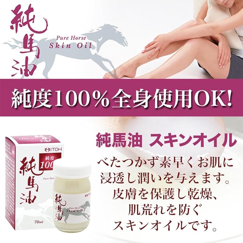 Discover the transformative power of Idō Kampō Seiyaku's Pure Horse Oil Skin Oil, a 70ml moisturizing formula perfect for all skin types. This fragrance-free oil, shipped directly from Japan, offers deep hydration and is ideal for sensitive skin. Enjoy free worldwide shipping and a 1-month warranty, ensuring a risk-free purchase. Whether you're battling dryness or seeking a versatile addition to your skincare routine, this lightweight oil absorbs quickly without greasiness, making it a must-have for daily use. Elevate your self-care rituals with this unique Japanese skincare gem!