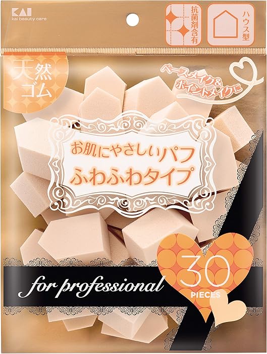 Kai Corporation Professional Foundation Puff Block KQ3064 - Full Coverage Makeup Applicator, 30 Pieces