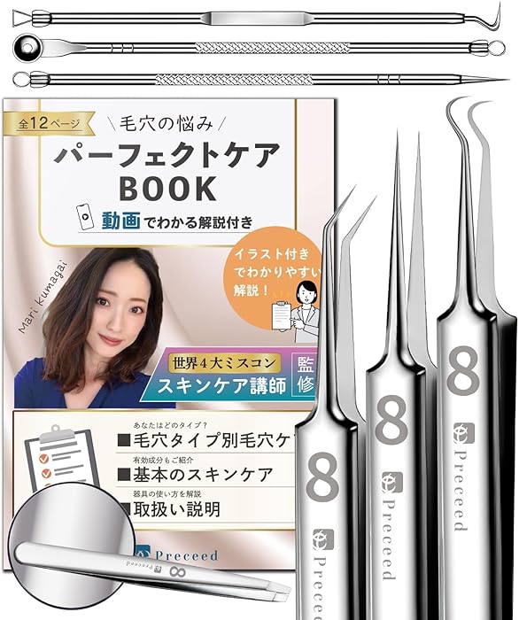 Transform your skincare routine with the Ultimate Pore Care Set - Precision Blackhead Remover Tweezers from Preceed. This innovative set is designed for those who seek flawless skin through expert blackhead removal. Guided by renowned beauty expert Prof. Mari Kumagai, a respected figure in the global beauty pageant circuit, this all-in-one solution comes complete with care guides and demonstration videos to help you achieve impeccable results safely and effectively.