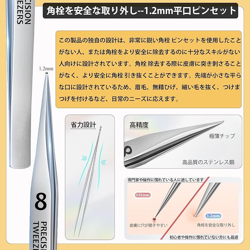 - Ultra-Fine Precision: The tweezers feature ultra-fine 0.01mm tips, allowing for meticulous handling of even the tiniest blemishes, such as stubborn blackheads and ingrown hairs.