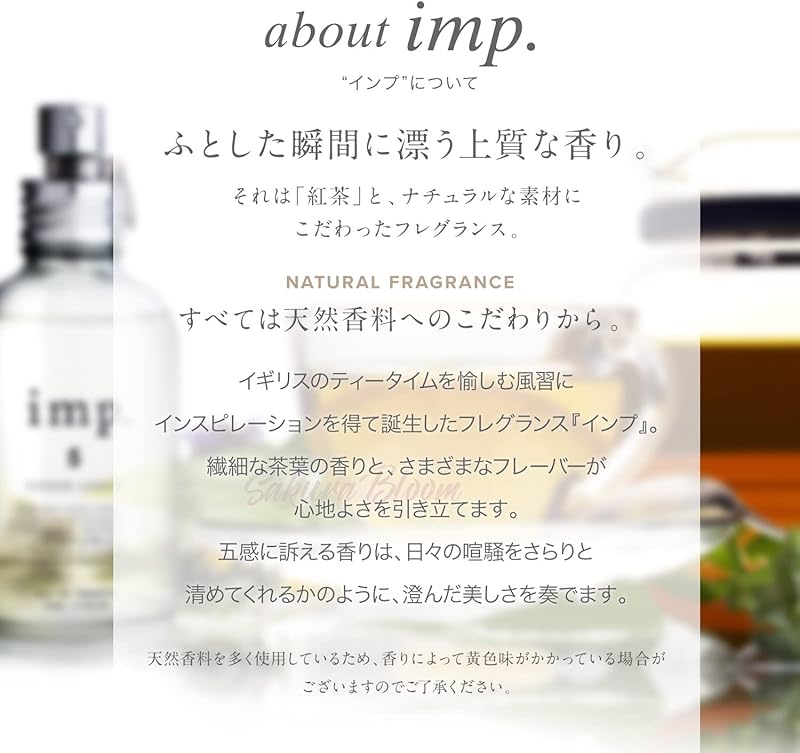 Crafted with care in Japan, this perfume showcases the high-quality standards synonymous with the imp. brand. The blend of natural ingredients and expert craftsmanship ensures that you experience a scent that is both luxurious and true to its promise of lightweight elegance. Japanese craftsmanship is renowned for its attention to detail and commitment to quality, making this fragrance a remarkable choice for those who appreciate fine artistry in perfumery.