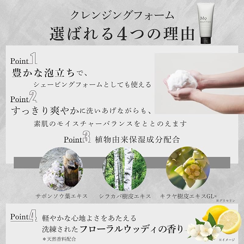 Discover the Magnifique Men’s Facial Cleansing Foam, the perfect hydrating and refreshing wash for combination skin. This luxurious 130g cleanser, crafted in Japan, offers a unique blend of natural ingredients, including Soapwort Leaf and Kakadu Plum extracts, ensuring your skin remains nourished and revitalized. Ideal for daily use, it doubles as a shaving foam, enhancing your grooming routine with its sophisticated floral-woody fragrance. Enjoy free worldwide shipping and a 1-month warranty, making this essential skincare product a risk-free addition to your regimen. Experience the essence of nature with every wash!