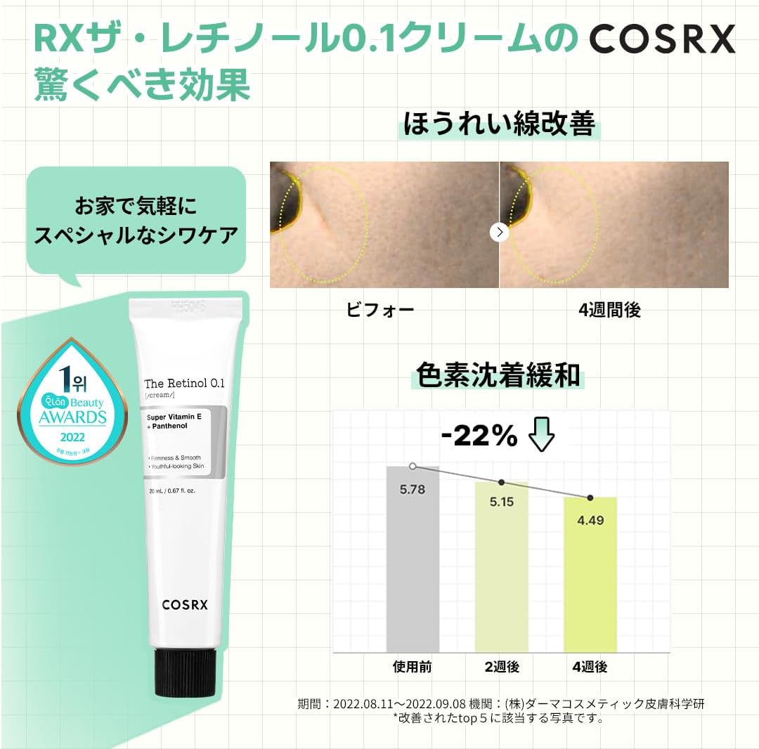 Unlock the secret to youthful, radiant skin with COSRX Retinol 0.1 Cream, a premium skincare solution shipped directly from Japan. This powerful cream harnesses the benefits of genuine pure retinol to diminish fine lines and dark spots, making it ideal for all skin types, including sensitive and acne-prone skin. With its gentle, non-comedogenic formula, you can confidently embrace a revitalized complexion. Enjoy free worldwide shipping and peace of mind with our 1-month warranty. Elevate your skincare routine with authentic Japanese innovation and experience visible transformations in your skin today!
