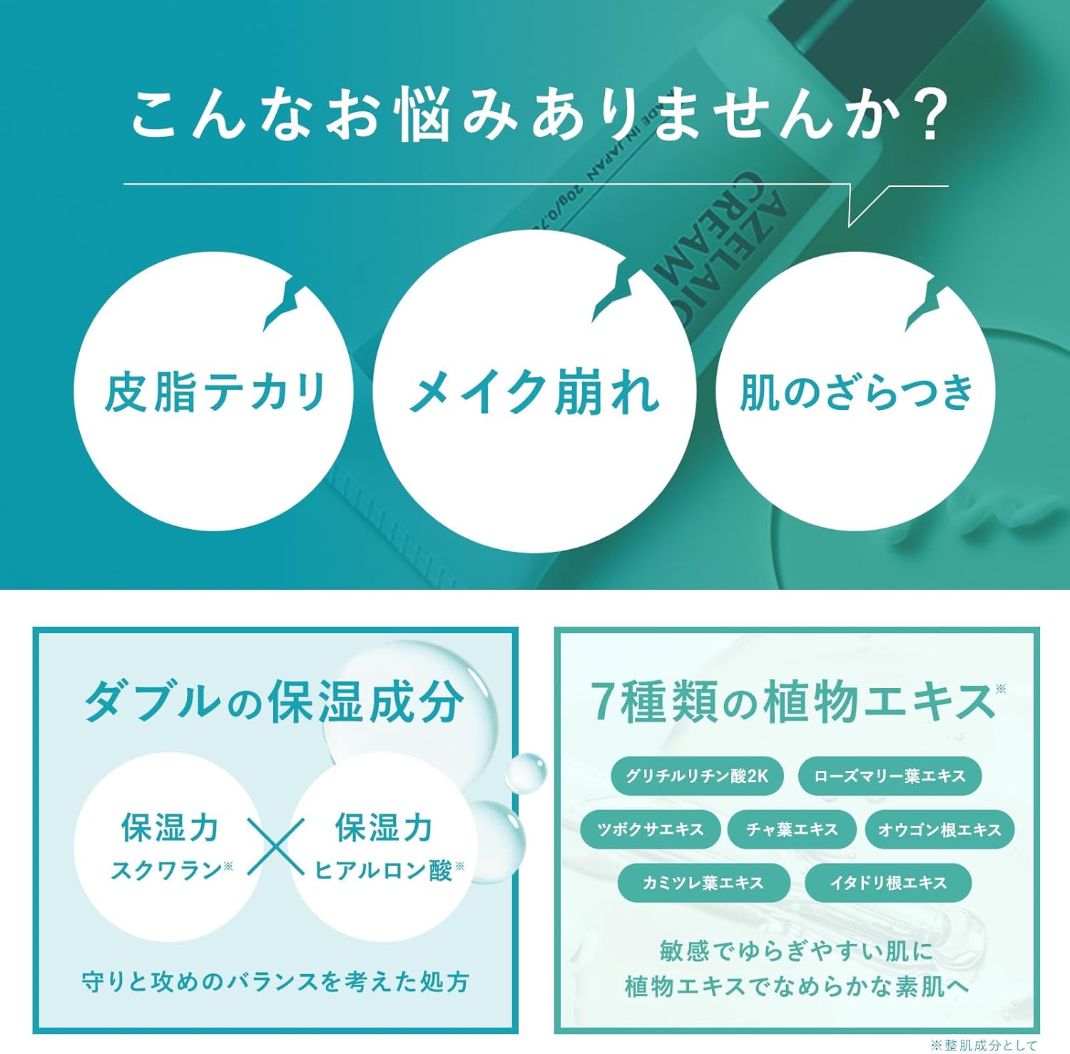 At the core of this innovative cream is azelaic acid, a naturally occurring component sourced from grains and yeast. Renowned for its ability to balance skin moisture and oil production, azelaic acid refines skin texture and promotes a clearer, more luminous complexion. Enhanced with glycyrrhizin acid 2K and CICA (Centella Asiatica Extract), this formula not only addresses skin irritations but also strengthens your skin's barrier against environmental stressors.
