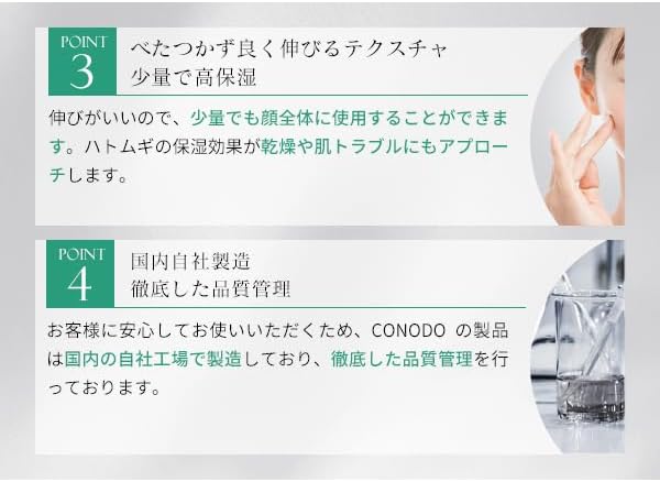 Manufactured in our state-of-the-art facility, the Purely Organic Hatomugi Serum is subject to rigorous quality control measures. Our dedication to excellence ensures that every bottle meets the highest standards of safety and efficacy, allowing you to apply it with confidence.