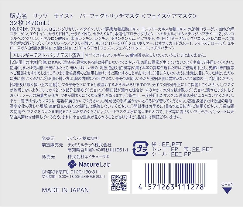 The Ritz Moisture-Rich Face Mask is more than just a skincare product; it's a ritual of self-care and indulgence. With its commitment to purity and quality, this mask showcases the unique artistry of Japanese skincare, which emphasizes natural ingredients and meticulous craftsmanship. The result is a product that not only hydrates but also nourishes your skin, providing a blissful experience that rejuvenates both your complexion and your spirit. Make this mask an essential part of your skincare routine and enjoy the luxurious hydration that keeps your skin looking radiant and healthy!