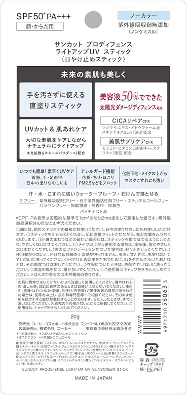 When comparing sun protection products, consider the balance of efficacy and skin compatibility. Many sunscreens can leave a greasy residue or cause breakouts, but the KOSE Suncut Pro Defense UV Stick is specially designed to provide a lightweight texture and a matte finish. This makes it an excellent choice for those who want effective sun protection without compromising their skin's health or appearance. For the best results, pair it with a broad-spectrum moisturizer for a comprehensive skincare routine.