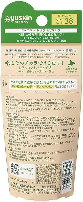 Discover the ultimate sun protection with Yuskin Shisora UV Milk SPF38 PA+++, a lightweight and fragrance-free sunscreen perfect for both face and body. Shipped directly from Japan, this 40g sunscreen offers reliable UVA and UVB protection, making it ideal for daily use—whether you're at the beach or enjoying a sunny day out. Its gentle, non-irritating formula is suitable for all skin types, ensuring comfort without the greasy feel. Plus, enjoy free worldwide shipping and a one-month warranty, giving you peace of mind with every purchase. Protect your skin and embrace the sun confidently!