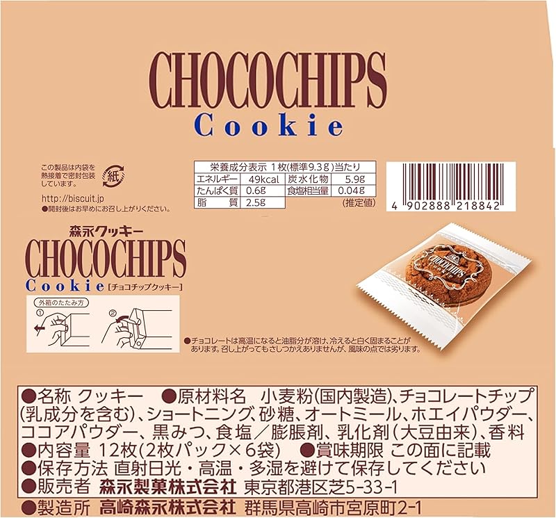 Indulge in the delightful taste of Morinaga Chocolate Chip Cookies, a perfect blend of flavor and goodness. Crafted by the renowned Japanese brand Morinaga, these cookies are not just a snack; they are a celebration of quality ingredients and traditional Japanese baking techniques. Each pack contains 12 cookies, with a total of 5 packs, making it an ideal treat for sharing or enjoying solo.
