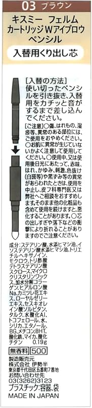 Elevate your brow game with the Kiss Me FERME Replacement Cartridge Dual Eyebrow Pencil in shade 03 Brown. Perfect for achieving both precise lines and bold strokes, this innovative Japanese-made pencil boasts a long-lasting formula that keeps your brows flawless all day. Enjoy the convenience of easy cartridge replacements, and rest assured with a 1-month warranty. Plus, we offer free worldwide shipping, making it easier than ever to enhance your beauty routine with this must-have product. Discover the quality and craftsmanship that only a seller based in Japan can deliver!