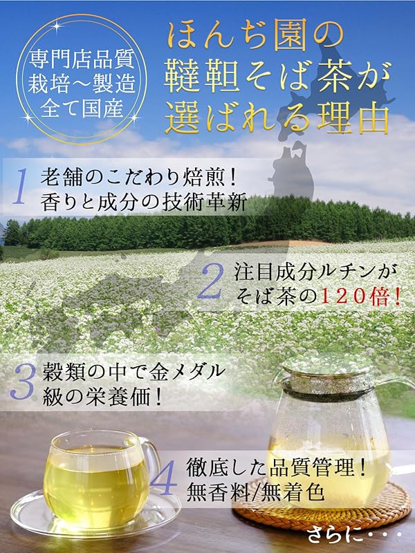 At Honjien Tea, we take immense pride in sourcing only the highest quality ingredients. Our buckwheat is 100% domestically produced in Japan, primarily sourced from the pristine regions of Hokkaido, Niigata, Nagano, and Oita. We are committed to maintaining rigorous quality standards by utilizing natural ingredients that are roasted in traditional pots. This ensures that each batch of tea meets our high expectations for flavor and health benefits.