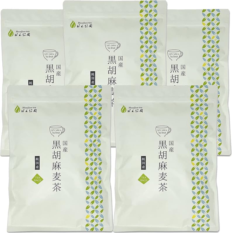 Honjien Tea Barley and Black Sesame Health Tea Bags - Caffeine Free, 5g x 50 Pack