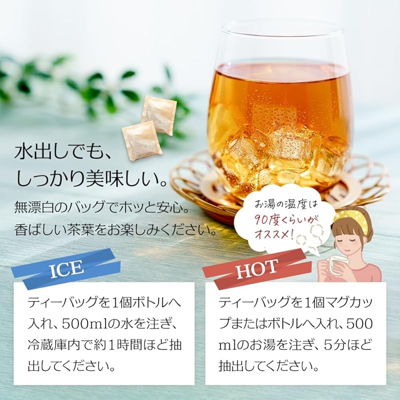 To brew a delightful cup of hot Houjicha, steep one tea bag in approximately 500ml of hot water for about 5 minutes. For a refreshing iced version, simply submerge a tea bag in 500ml of cold water and let it sit for 60 minutes. Whether you’re at home or on the go, the versatility of our tea makes it a premium choice for every occasion.