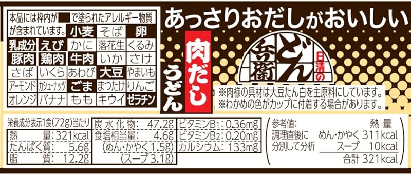 Crafted with care, every ingredient is selected for its quality and flavor. From the rich and robust dashi to the chewy udon noodles, each element is designed to create a product that stands out in taste and satisfaction. For detailed information on ingredients and nutritional values, please refer to the product packaging.