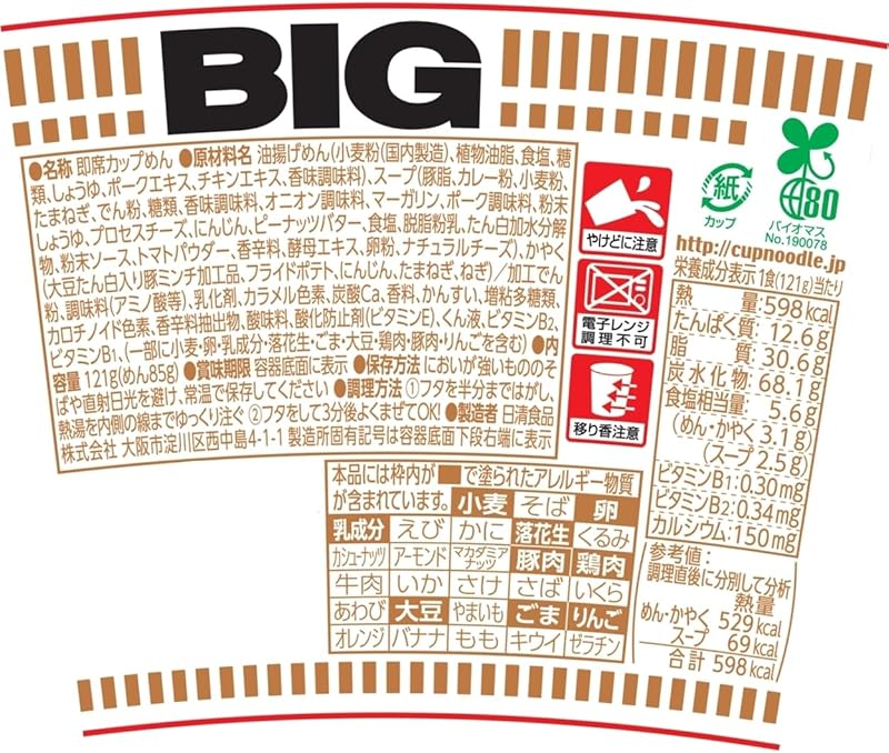 Cup Noodles Curry Big is made with high-quality ingredients including: