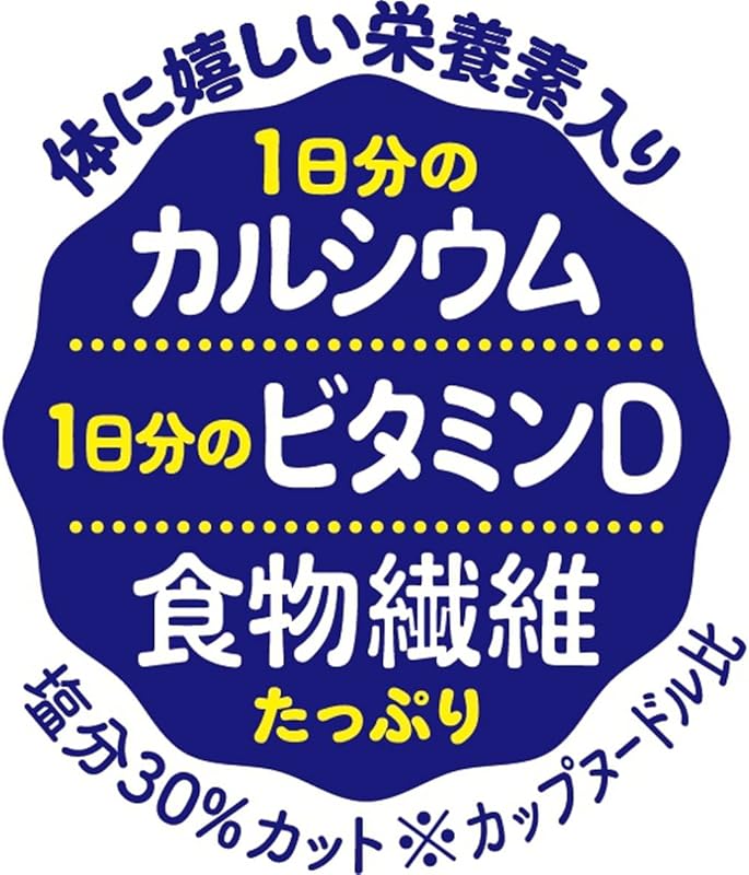 Each cup of Cup Noodle Reduced Sodium PRO not only offers a delightful taste but also delivers a significant daily intake of calcium and vitamin D, which are vital for maintaining strong bones. Additionally, the generous serving of dietary fiber supports a healthy digestive system, making it an excellent choice for those who prioritize their health and well-being.