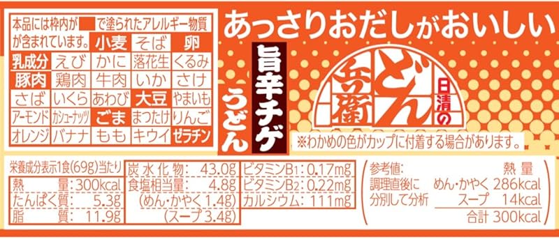 Each cup of Deliciously Spicy Donbei Udon contains a thoughtful selection of ingredients, including wheat, milk, and egg. These ingredients ensure a delightful taste experience while considering common allergens. For detailed information regarding ingredients and nutritional values, please refer to the product packaging. Enjoy your meal with the peace of mind that comes from knowing what’s inside!