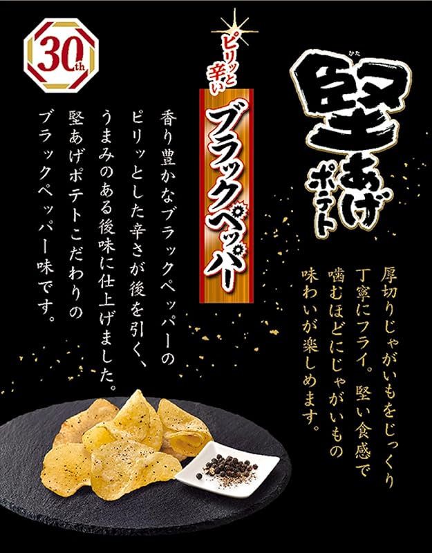Indulge in the savory delight of Calbee Hard-Fried Potato Chips in Black Pepper flavor, available in a convenient pack of 12 bags (65g each). Perfect for any occasion, these chips are not only irresistibly crunchy but also crafted using a unique direct-fire frying method that locks in rich potato flavor. Enjoy free worldwide shipping and experience authentic Japanese snacking, shipped directly from Japan to your door. Plus, with a 1-month warranty from our trusted seller based in Japan, you can snack confidently. Elevate your snack game and satisfy your cravings today!