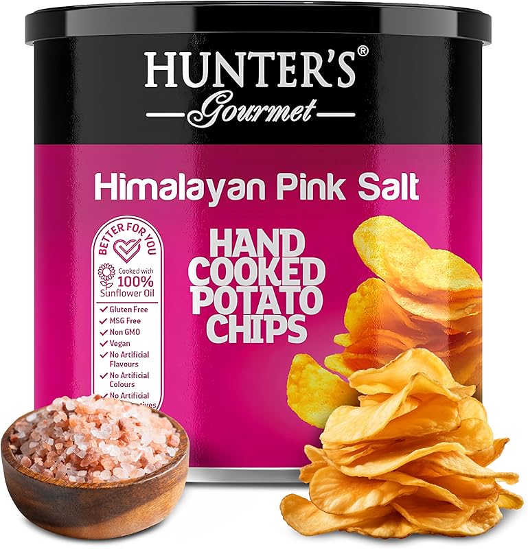 Experience snacking like never before with Hunter's Himalayan Salt Potato Chips. Each 150g canister is filled with crunchy, golden potato chips that are not only delicious but also crafted with care. Seasoned with premium Himalayan salt, these chips provide a unique flavor profile that elevates your snacking experience. Whether you're on-the-go or relaxing at home, Hunter's has the perfect crunch for every occasion.