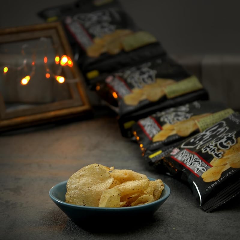 Elevate your snacking experience with Calbee Kentaage Potato Chips - Black Pepper Flavor. These uniquely crafted potato chips deliver a delightful crunch and an unforgettable flavor profile that caters to both casual snackers and gourmet enthusiasts alike. Each pack contains thick slices of premium potatoes, expertly fried at low temperatures using a traditional open-fire cooking method. This meticulous process not only ensures an irresistible crunch but also preserves the natural flavor of the potatoes, making these chips a must-try!