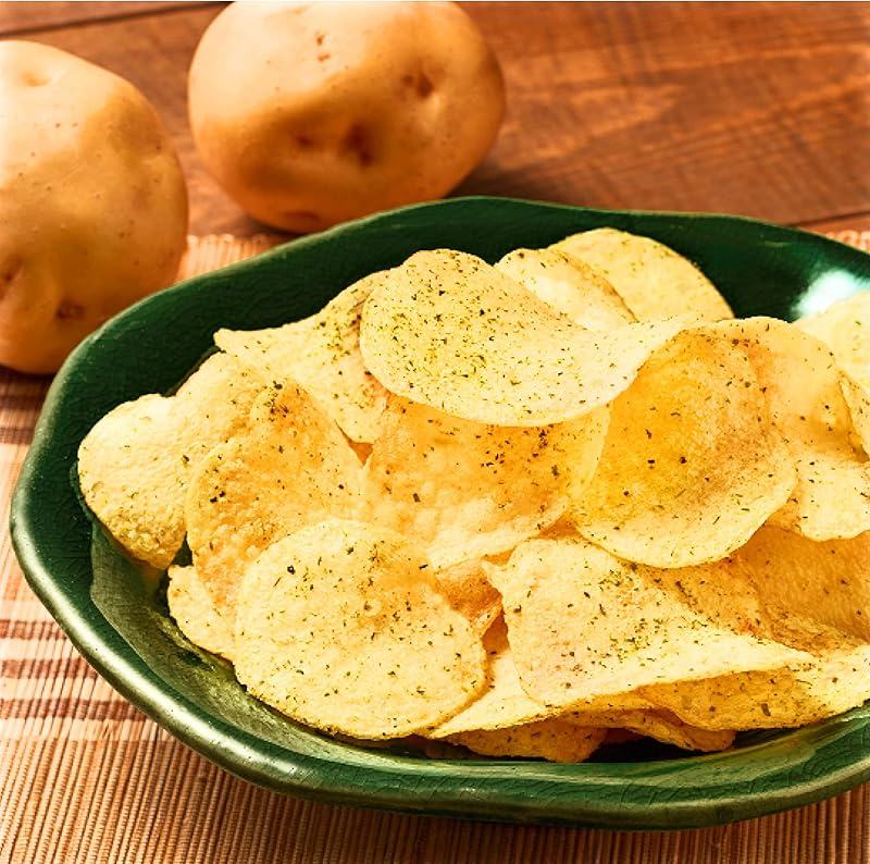 The Light Salt flavor enhances the inherent umami and sweetness of the Imakane Danshaku potatoes, delivering a classic potato chip experience with a sophisticated twist. On the other hand, the Seaweed Salt flavor features a delightful blend of green nori seaweed and aosa, infusing each chip with an enticing oceanic aroma and flavor. This combination pays homage to Koikeya's tradition of creating unique and flavorful snacks that celebrate the richness of Japanese ingredients.