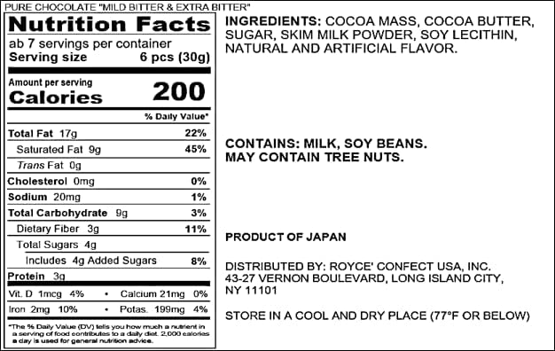 ROYCE' Pure Chocolate Mild Bitter & Extra Bitter (40 Pieces)