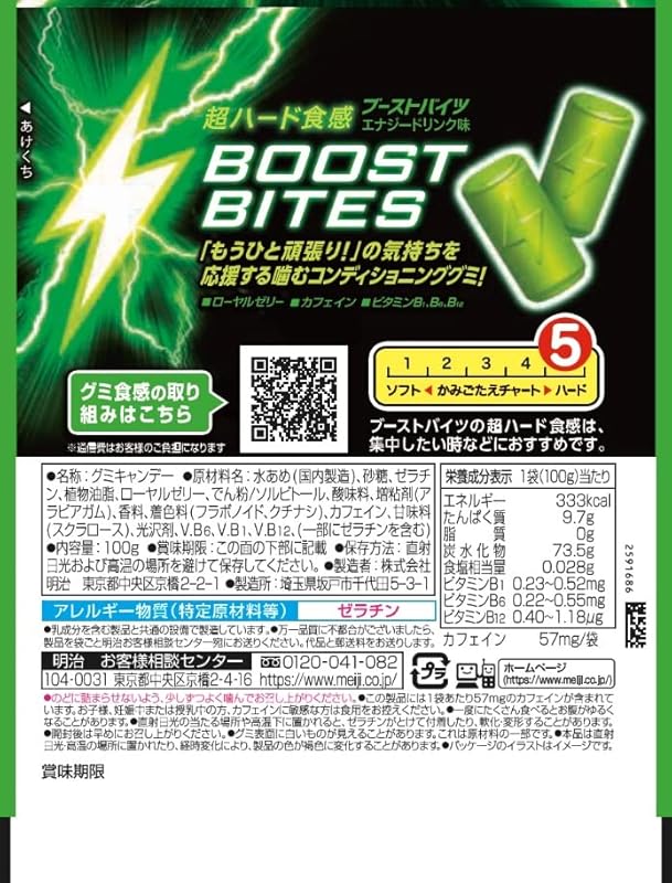 Discover the perfect pick-me-up with Meiji Boost Bites, your ultimate energy snack solution! Ideal for busy professionals and students alike, these chewy gummies are enriched with Royal Jelly and essential B vitamins to boost your focus and energy levels. Enjoy the invigorating flavor inspired by energy drinks, all while knowing that each convenient 100g bag is gluten-free and crafted for an enjoyable snacking experience. Plus, with free worldwide shipping directly from Japan and a 1-month warranty, you can indulge in these delightful bites worry-free. Elevate your snacking game and fuel your day with Meiji Boost Bites!