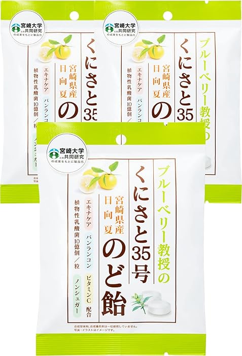 Introducing Kunisato 35 No. Throat Lozenges, a revolutionary solution for those seeking soothing relief without the sweetness of traditional candies. Developed in collaboration with Miyazaki University, these throat drops harness the potency of the rare Kunisato 35 blueberry. With zero sugar content, they redefine throat care with a refreshing citrus flavor that pleases the palate while promoting health.