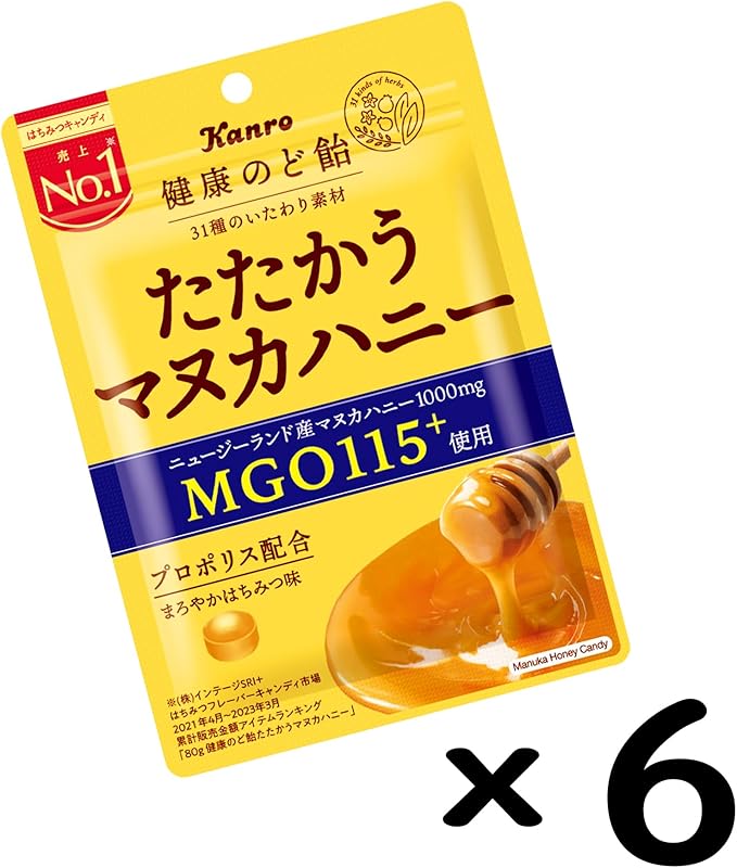 Kanro Health Throat Candy with Manuka Honey - 80g x 6 Bags