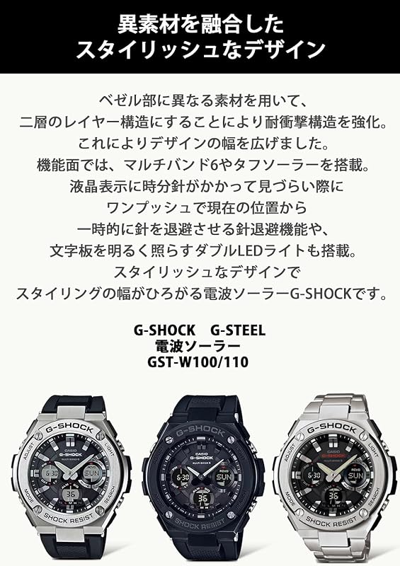 The G-SHOCK G-STEEL Solar Radio-Controlled Watch - Model GST-W110 by Casio is more than just a timekeeping device; it embodies resilience and innovation. Crafted for individuals who thrive on challenges, this sleek black wristwatch integrates state-of-the-art technology with rugged durability, setting a new standard for toughness. With the introduction of the unique "Layer Guard Structure," this timepiece enhances shock resistance while maintaining a modern aesthetic. Whether you're navigating city streets or embracing extreme environments, the GST-W110 is the ideal companion for those who push their limits.