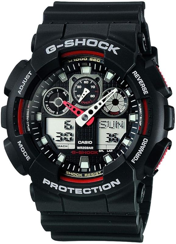 Introducing the Casio G-Shock Men's Analog-Digital Watch GA100-1A4, a timepiece that embodies the perfect fusion of functionality, durability, and contemporary style. Designed for the modern man who values reliability and versatility, this watch is equipped with a multitude of features that cater to an active lifestyle, making it the ideal accessory for any setting—be it casual, sporty, or professional.