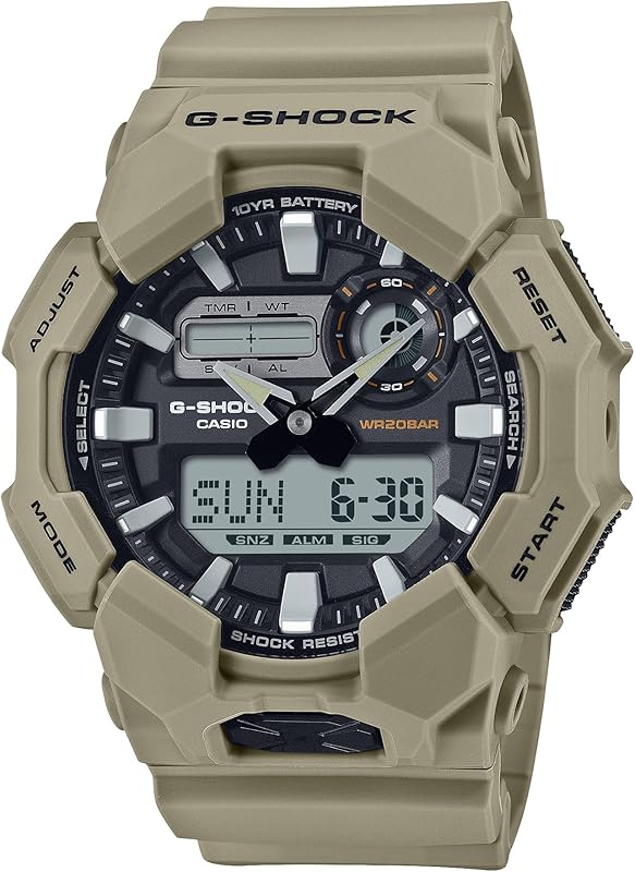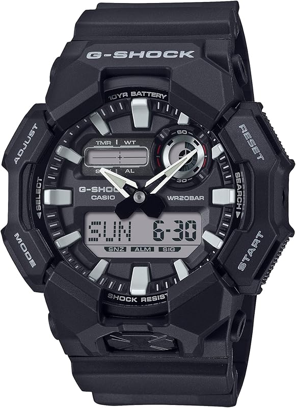Introducing the G-SHOCK Men's Digital and Analog Watch from Casio, specifically the model GA-010-1AJF. This watch is more than just a timekeeper; it represents a legacy of over 40 years in innovative and rugged design, perfect for those who demand both durability and style. With its bold design featuring a wide face and substantial case, this timepiece is ideal for any setting, from casual outings to formal events.