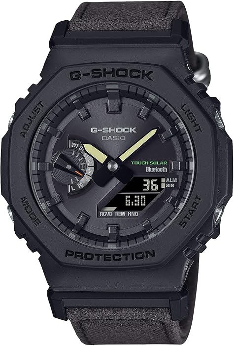 Discover the future of sustainable elegance with the G-SHOCK Men's Tough Solar Bluetooth Watch, featuring a unique Food Textile Band and components made from biomass plastic. Manufactured by Casio, this watch not only delivers exceptional durability and style but also reflects a commitment to environmental responsibility. Since its inception in 1983, the G-SHOCK brand has been synonymous with toughness, and this model marks a significant leap toward eco-friendly innovation.