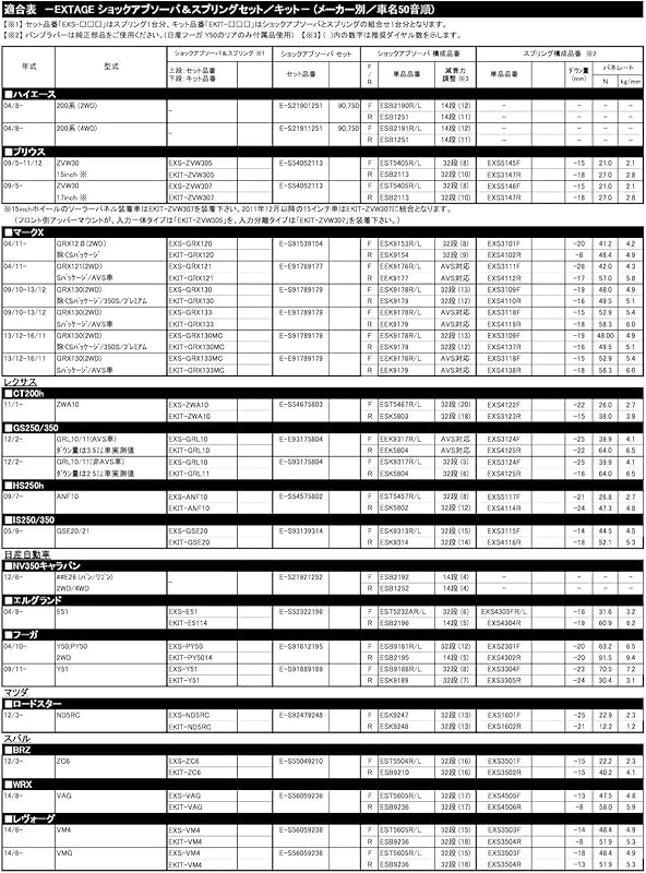 KYB(カヤバ) Shock Absorber Set (Extage SET) for Hiace H200 4WD 14-stage E-S21911251